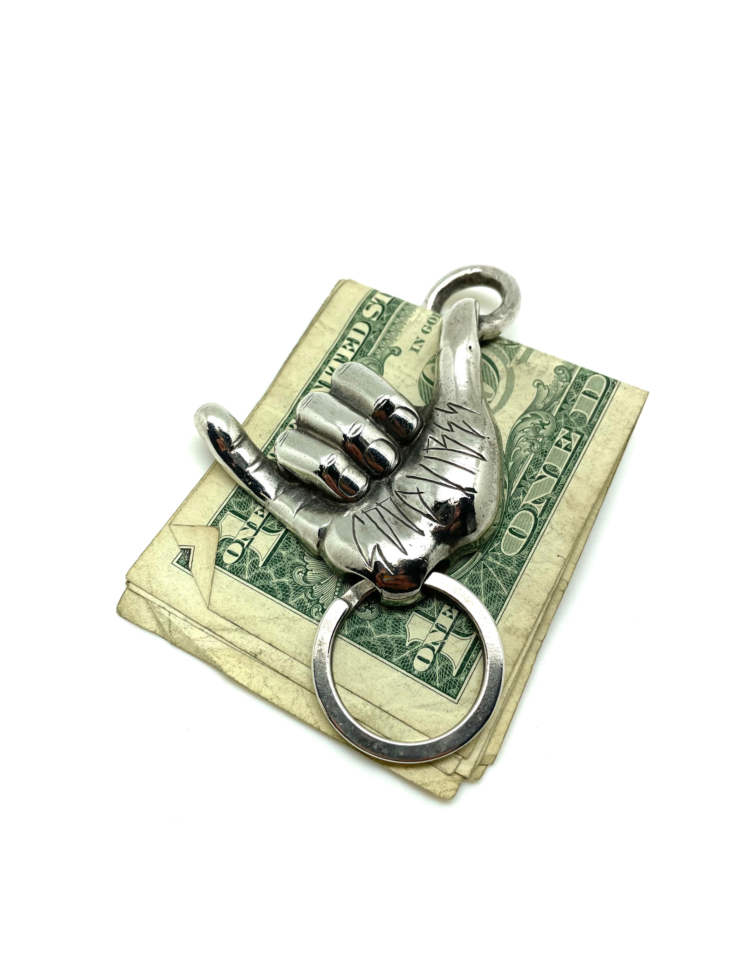 ハングルーズのハンドサインをしているキーフック&マネークリップです。