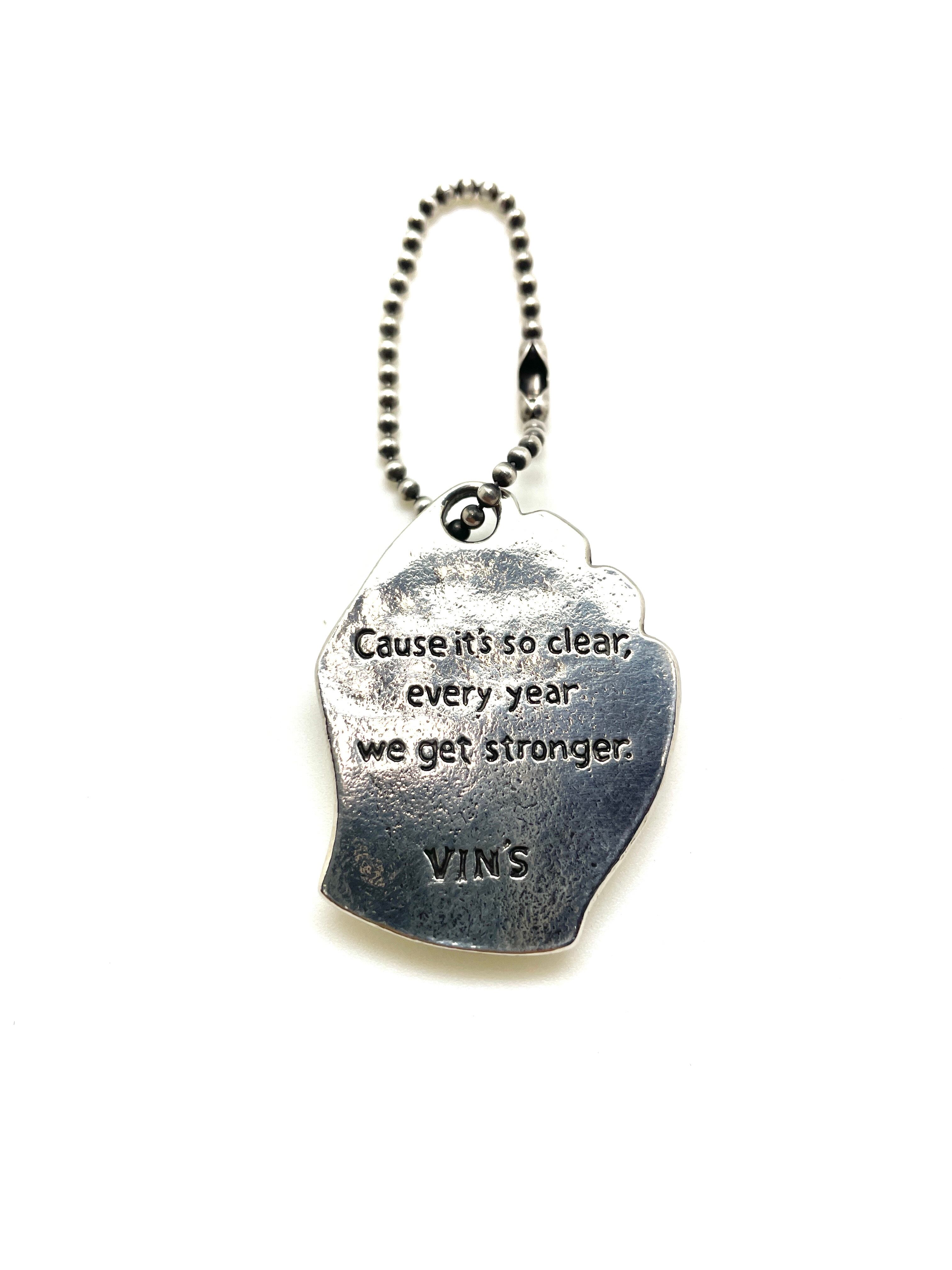 このメッセージを握り拳に込めたインパクトのあるキーホルダーです。