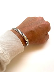 ビンテージ感漂うデザインが魅力のCandyBangle。ねじったキャンディのような独特な形状が印象的で、存在感のあるアクセサリーです。