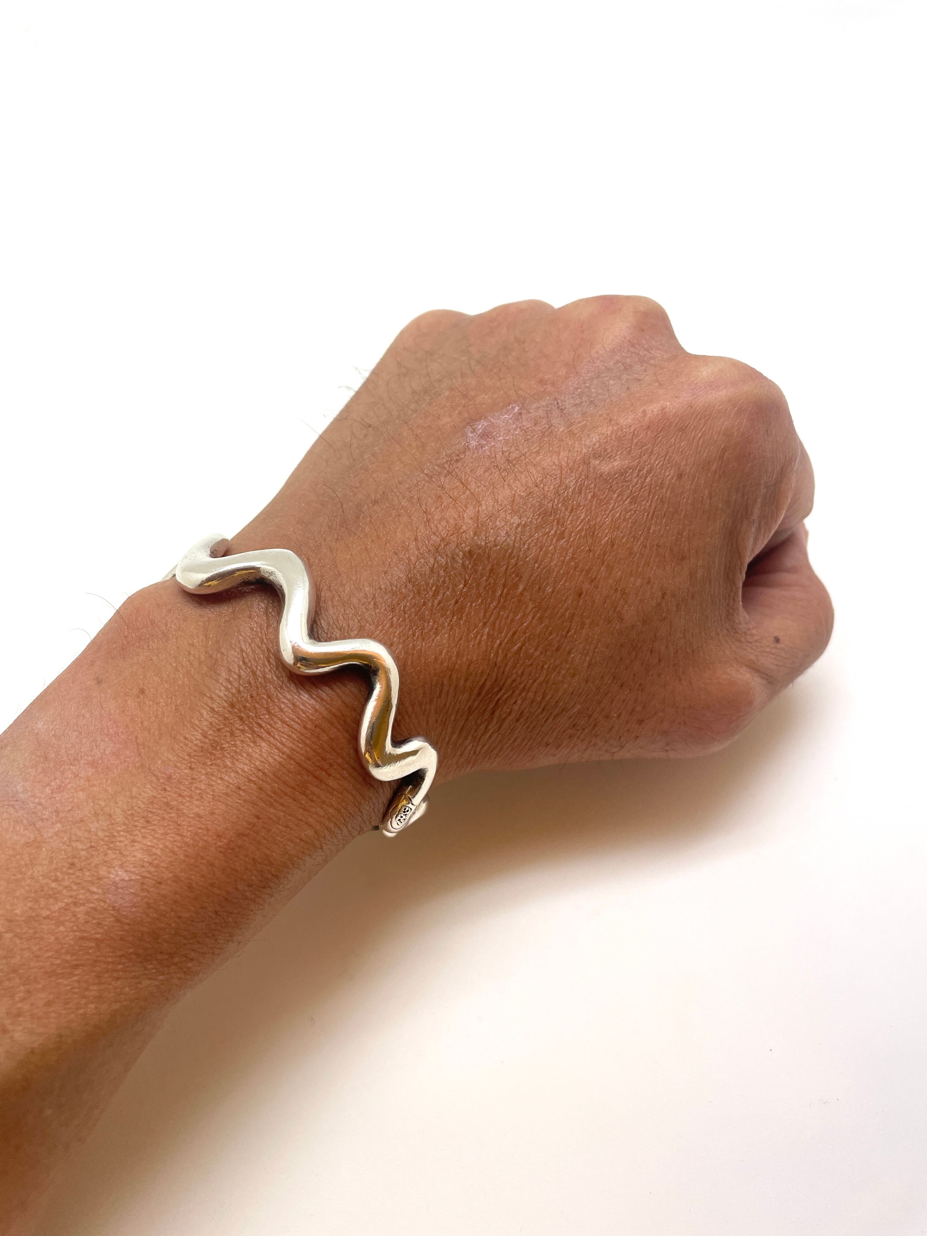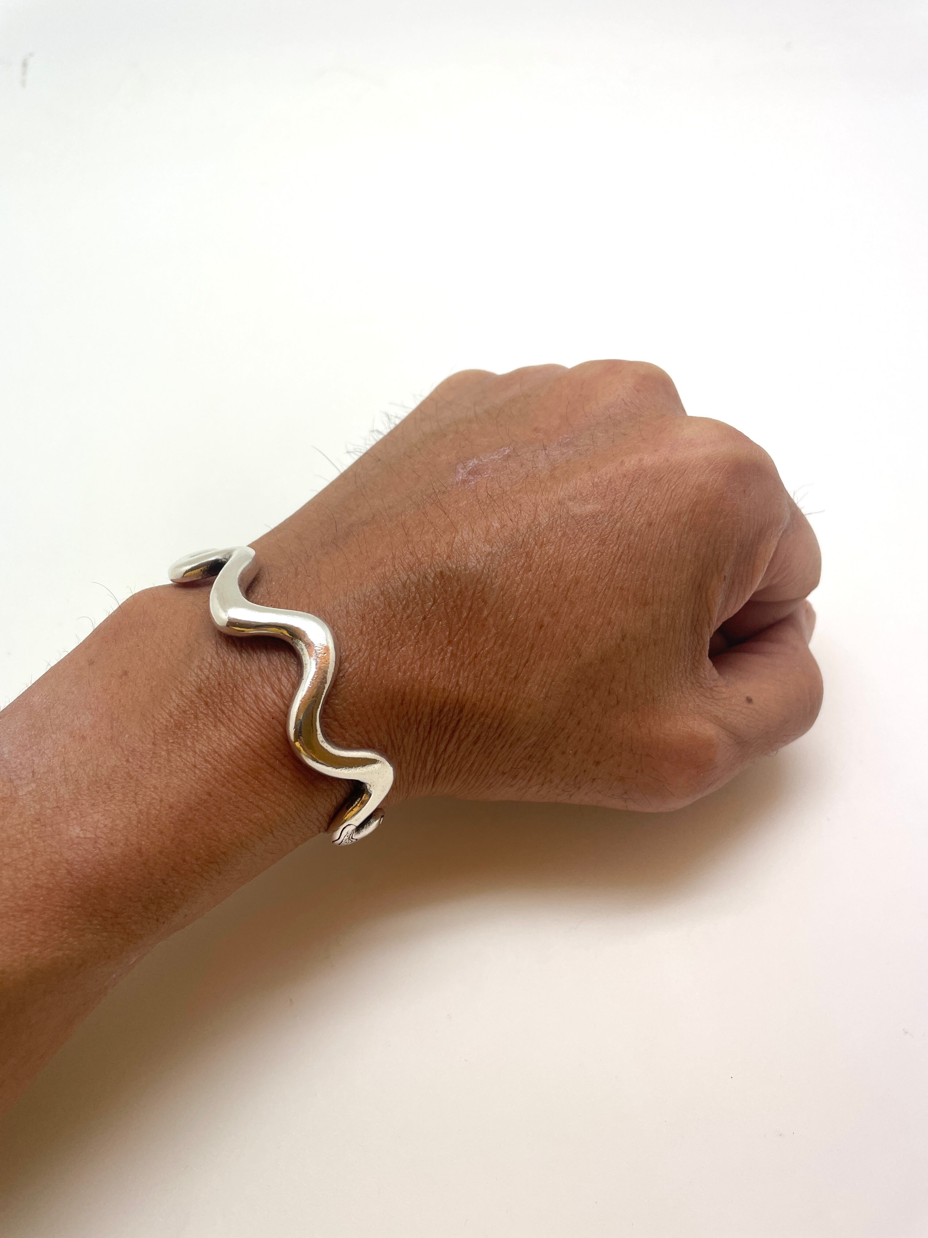 しなやかな曲線を描くヘビのデザインが、手首に美しくフィットし、ファッションのアクセントとしてぴったりです。