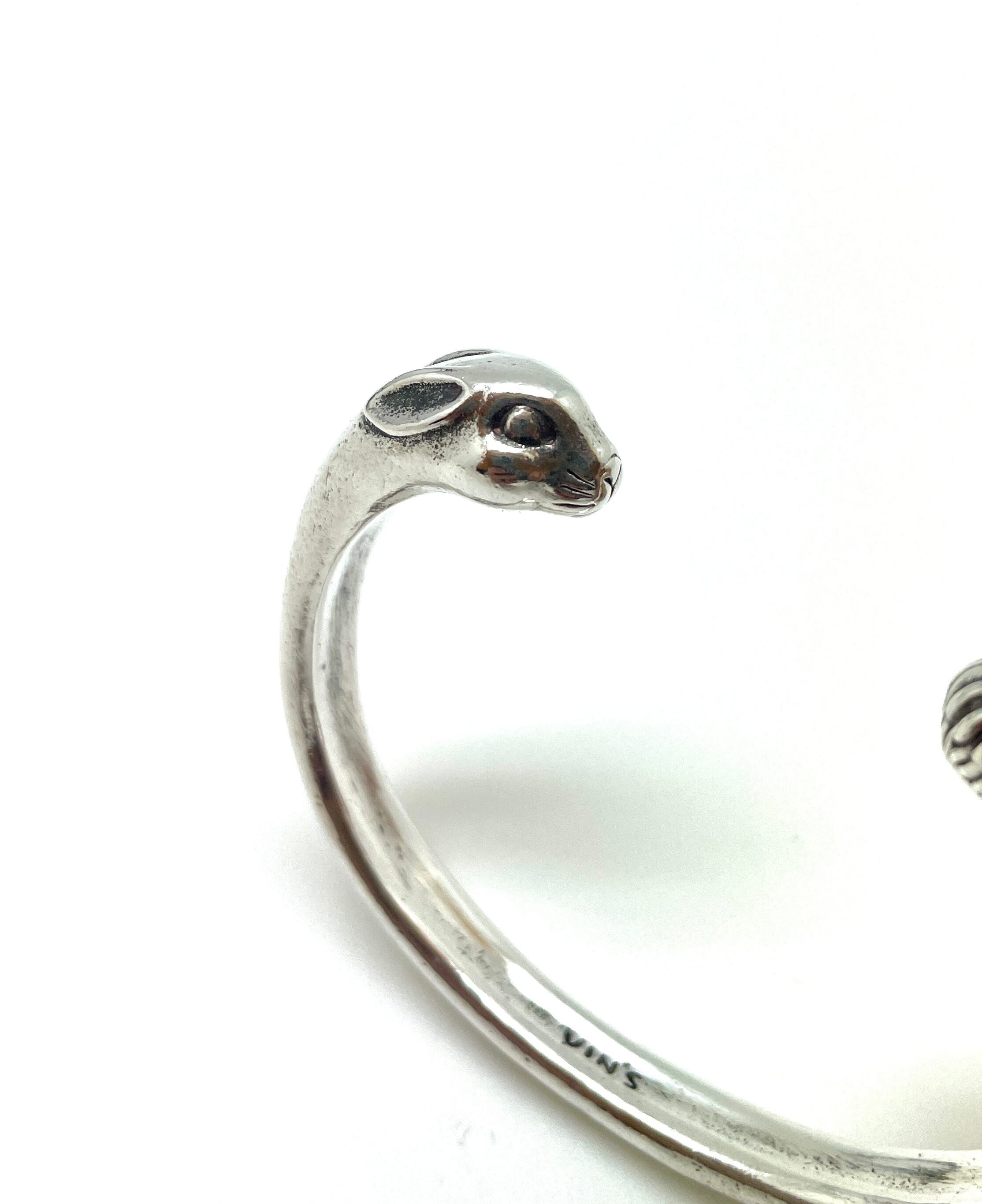 シンプルながらも魅力的なデザインで、愛嬌のあるウサギの顔と、もう片方にはウサギの後ろ脚を模ったこのバングルは、ファッションに遊び心を加えるアイテムです。
